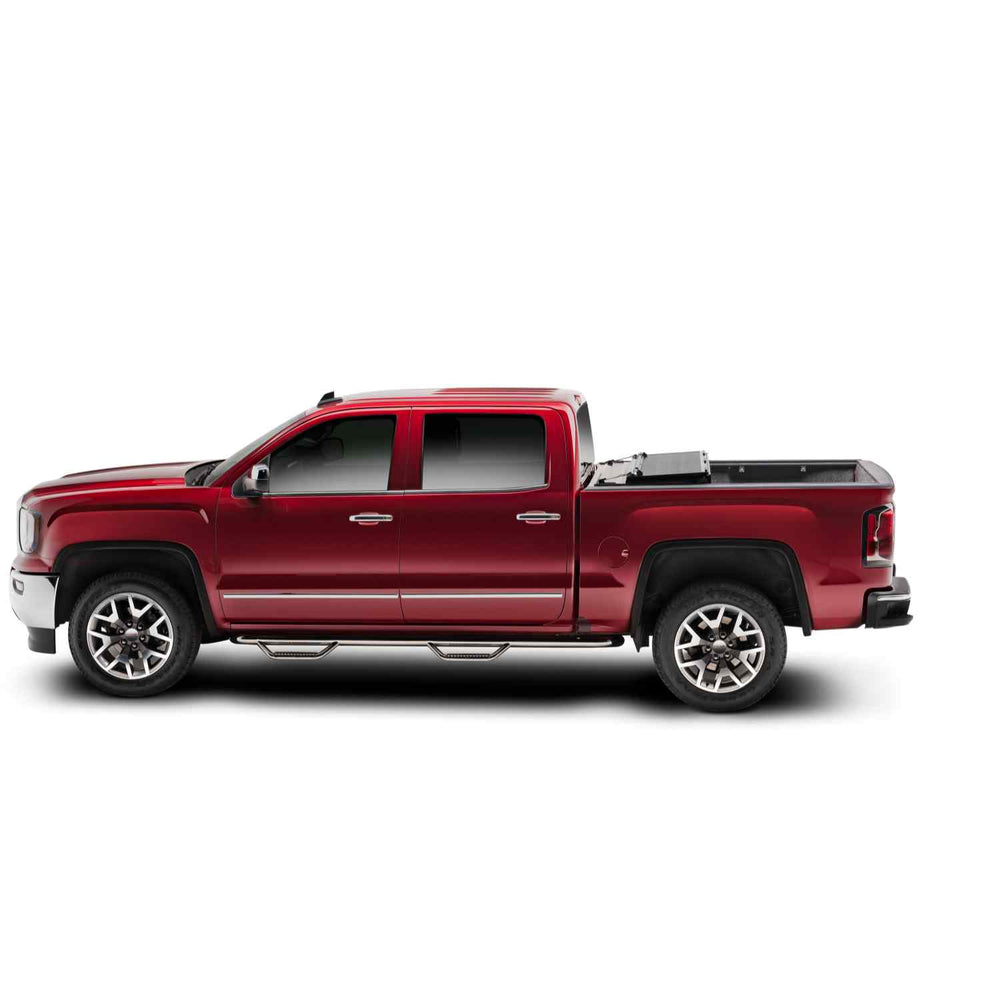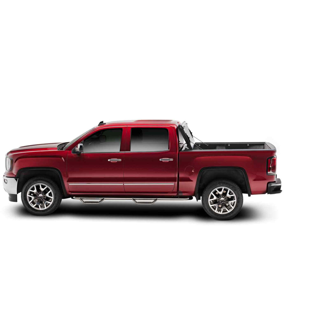 Its textured gloss-black finish and flush-mount appearance ensure a stylish look that complements your truck's lines.