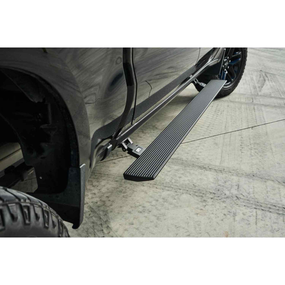 - Automatic Deployment: The 6" wide, full cab length steps automatically deploy when you open the vehicle doors and retract when closed, providing convenience and safety.