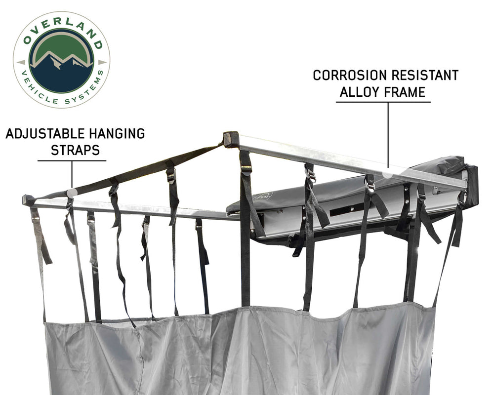 The HD Nomadic Car-Side Shower Room is ideal for overland travel, camping, or suited to campers and trailers, providing shower, toilet or change room privacy while on the trail. Shower Room is light weight, convenient, and easy to set up. It easily mounts to your vehicle just like a traditional awning. Looking for a convenient way to shower or use the toilet while camping or traveling? The Overland Vehicle Systems HD (Heavy Duty) Car-Side Shower Room is perfect for you! This light weight and easy to set up shower room mounts to your vehicle just like a traditional awning, providing you with privacy when you need it most. Whether you're camping in the middle of nowhere or just want to change out of your muddy clothes, the Overland Vehicle Systems Car Side Shower Room is perfect for any situation. Order yours today and make your next adventure even better!