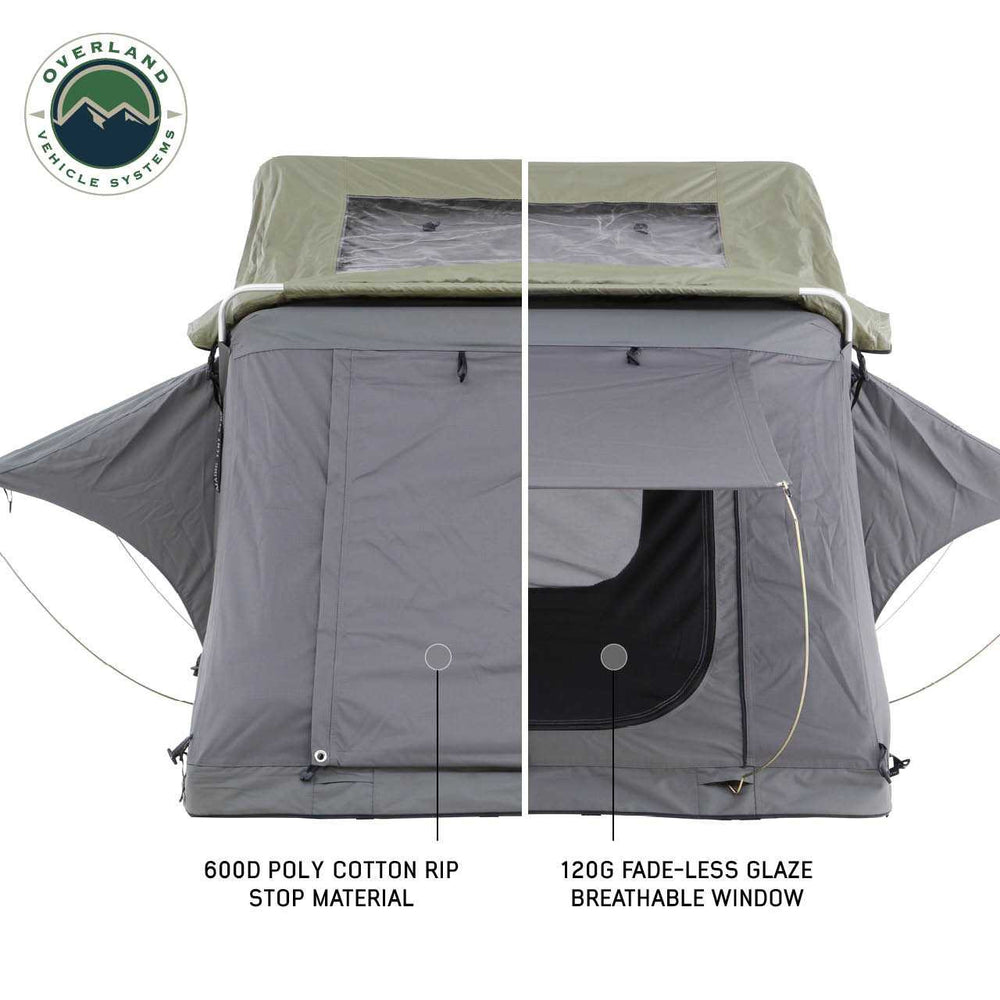 If you're looking for a Roof Top Tent that is built to last, look no further than the Overland Vehicle Systems Nomadic 2 Extended Roof Top Tent. This Roof Top Tent is made from heavy duty double insulated one-piece black diamond plated base material and features marine grade stainless steel hinges and hardware. The 96" heavy duty aluminum telescoping ladder with locking strap and quick release steel hinges make it easy to get in and out of the roof top tent, even in the harshest of conditions. The 600D Heavy Duty Poly Cotton Rip Stop Canvas body is built to withstand the elements, and the included rain fly provides additional protection from the elements. The 420D Heavy Duty Polyester rainfly will keep you dry in even the heaviest of downpours. All the seams in both Roof Top Tent Rainfly and Roof Top Tent Body are heat sealed for extra waterproofing. The new "V" strength ridges integrated in the window rod poles are designed for stability in windy conditions. So, if you're looking for a roof top tent that can withstand Mother Nature, the Overland Vehicle Systems Nomadic 2 Extended Roof Top Tent is an excellent choice.